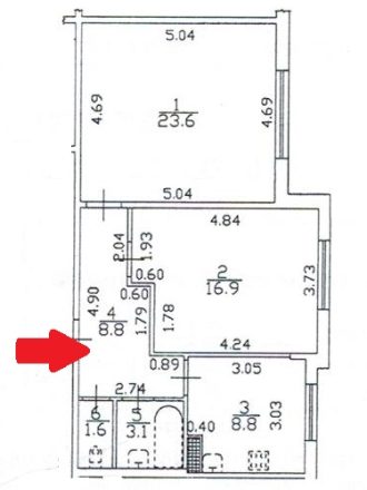Жилая S=23,6+16,9 м²